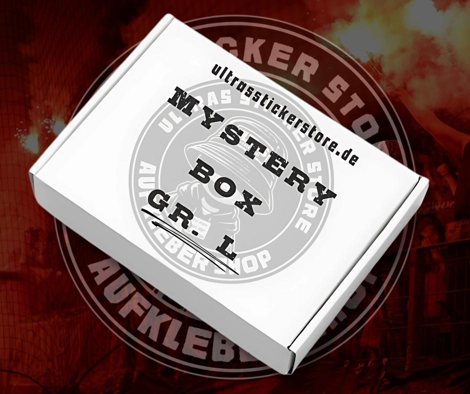 Die Mystery Box L ist das ultimative Überraschungspaket für echte Stickerliebhaber. Gefüllt mit einer besonders großen Auswahl an Fußball- und Ultras-Stil Stickern, die wir selbst entworfen haben, ist jede Box einzigartig – perfekt für alle, die Abwechslung lieben.